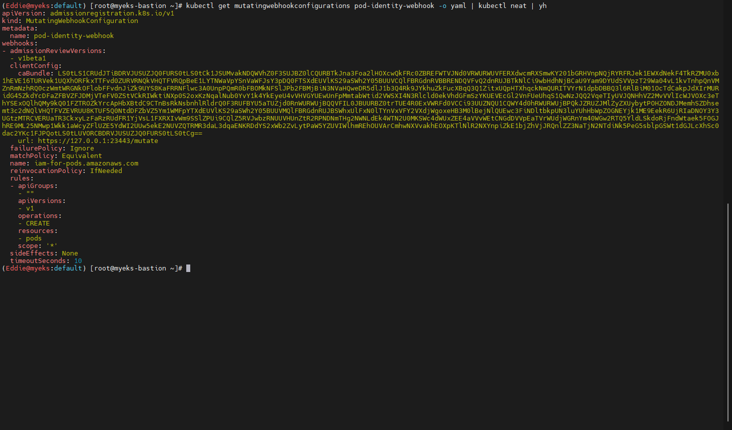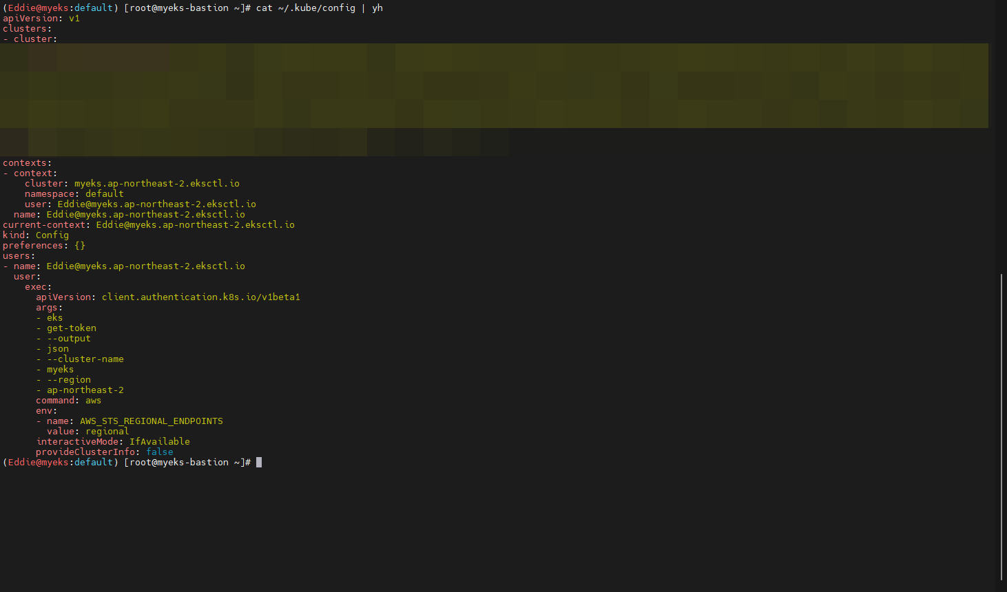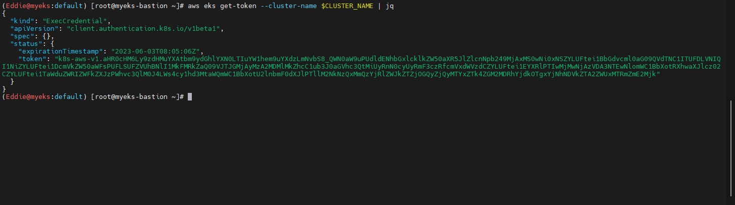 : eks get-token --output json --cluster-name myeks --region ap-northeast-2