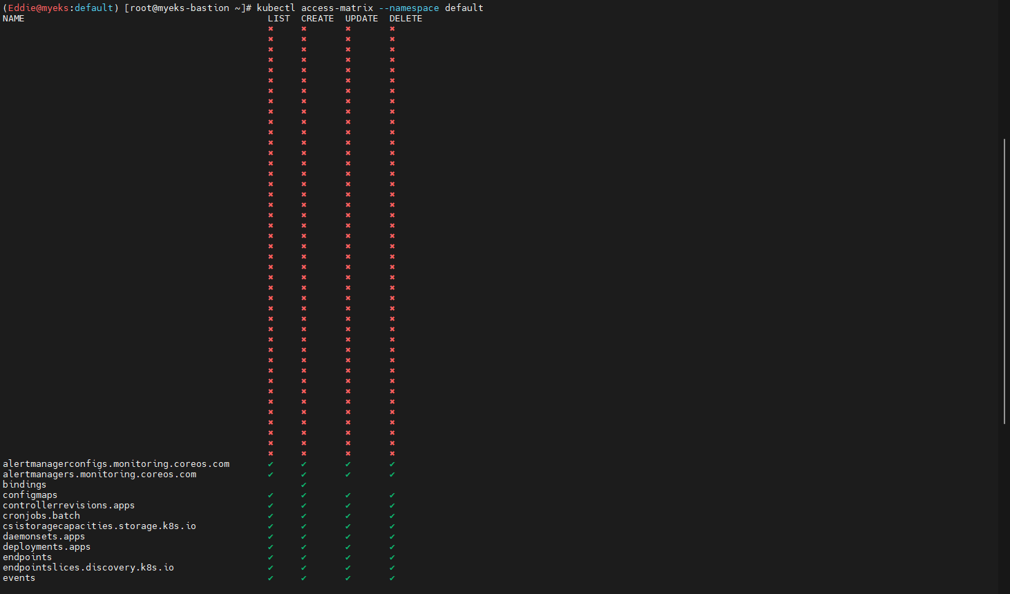 - access-matrix : 서비스 리소스별 RBAC access 정보 확인