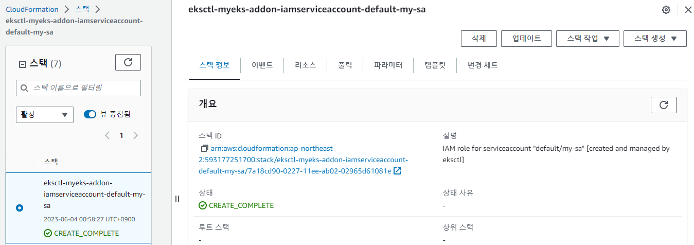- IRSA 생성시 마다 CloudFormation을 통해 IAM role 생성 확인