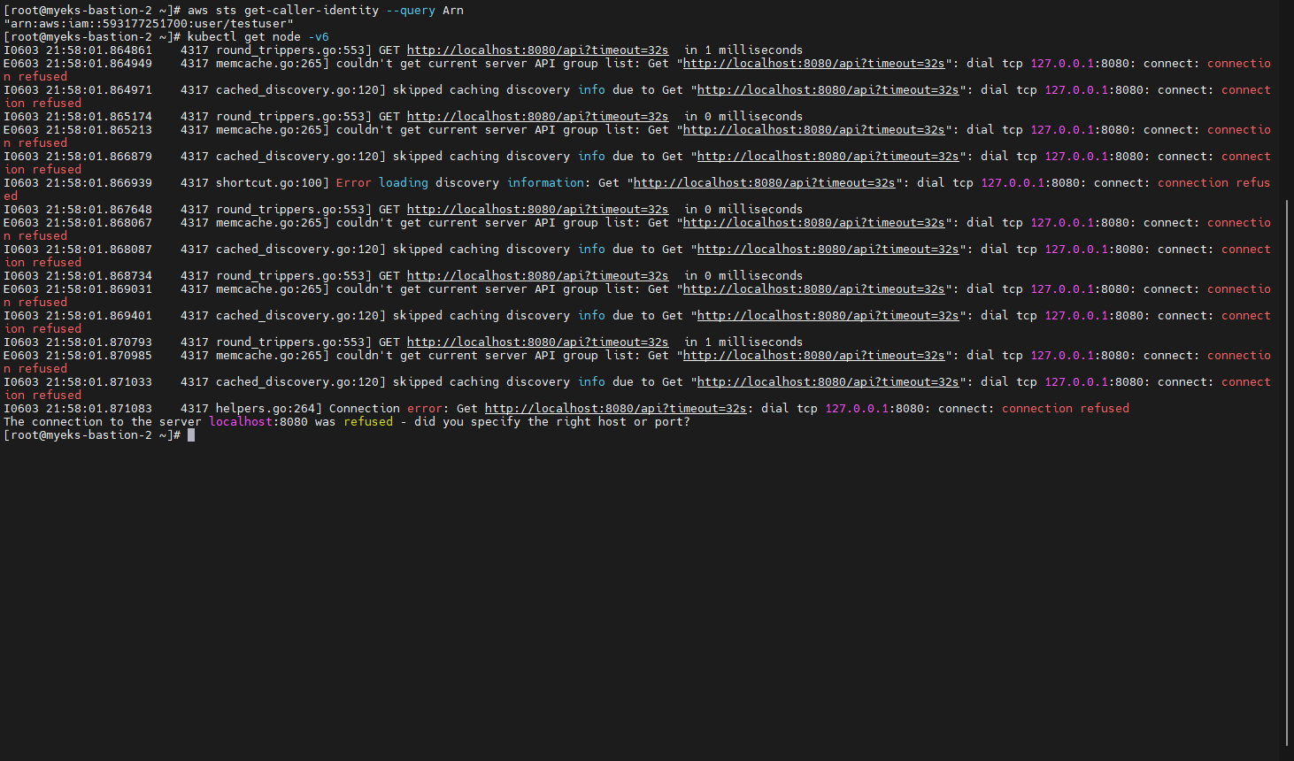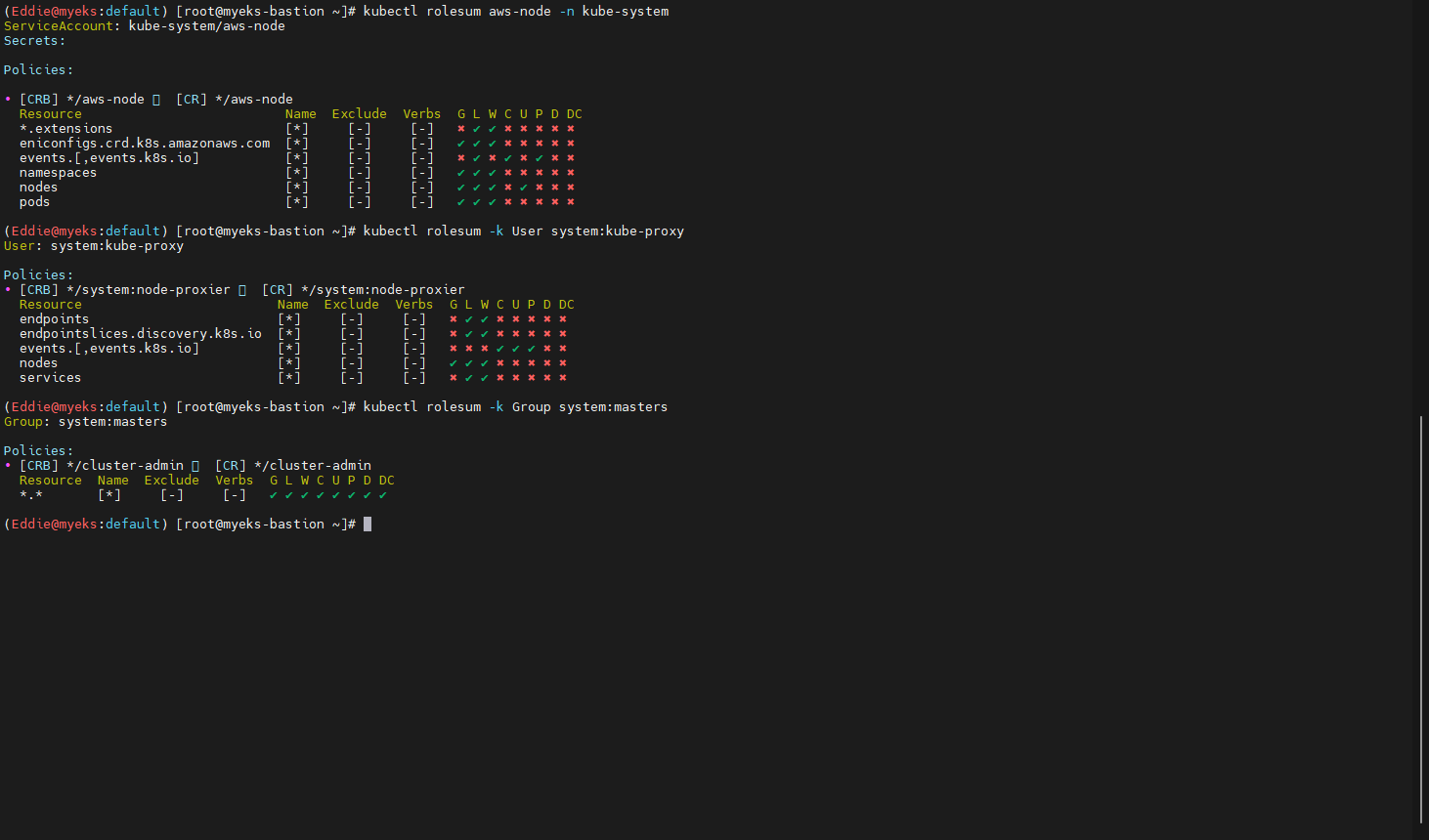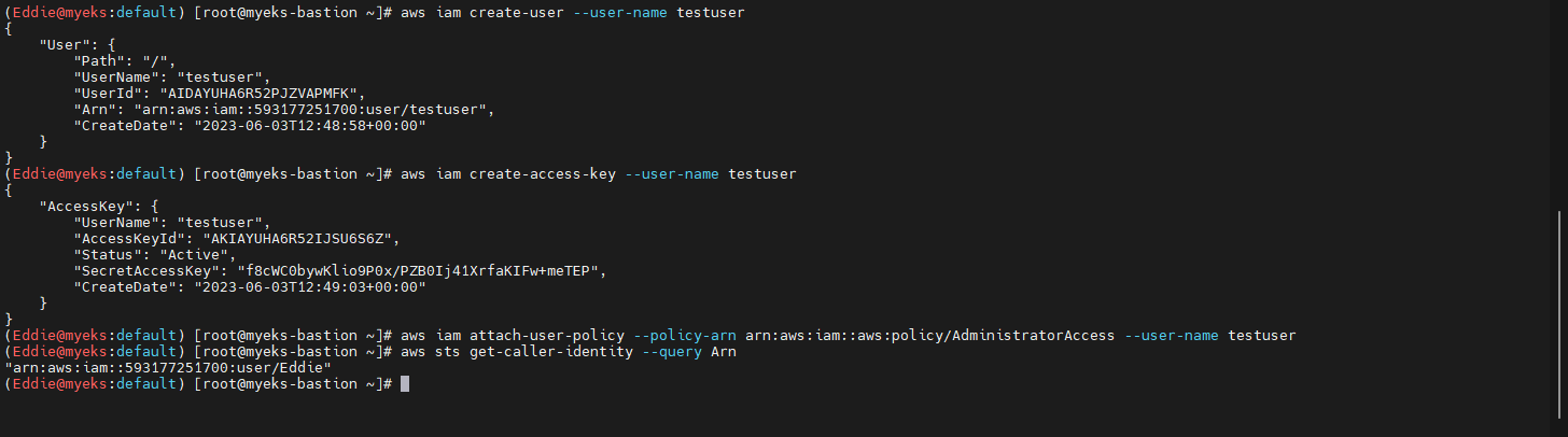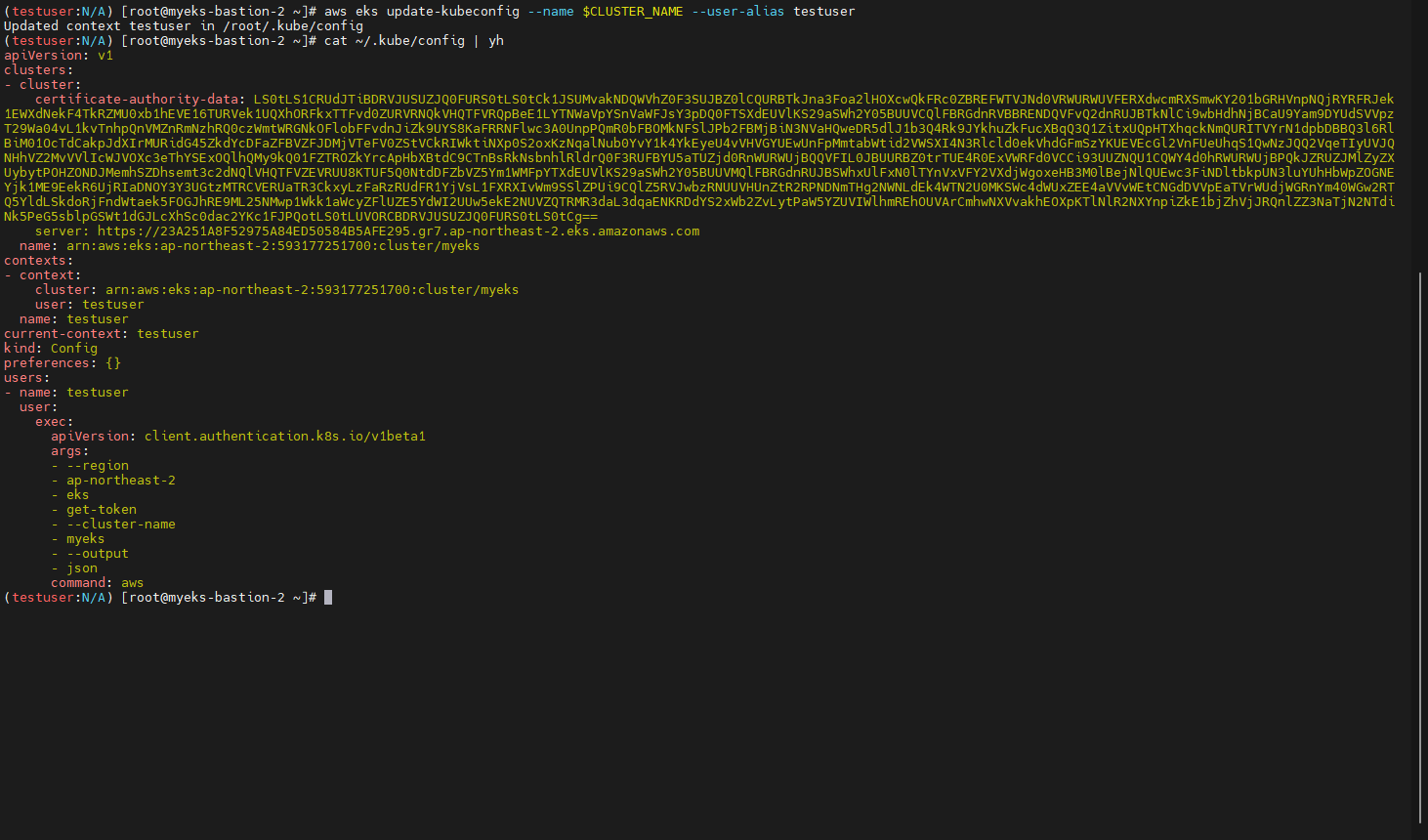 - 신규 생성한 계정으로 다른 Bastion에서 동일 쿼리 수행 확인 후 kubectl 확인