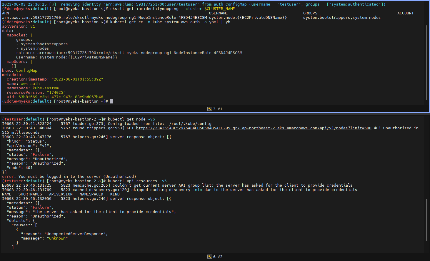: kubectl edit cm -n kube-system aws-auth //master -> authenticated